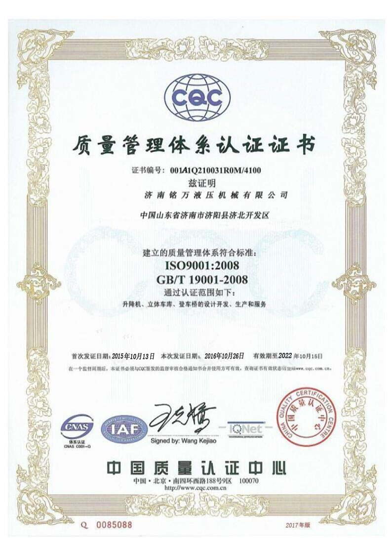 +濟(jì)南銘萬液壓機(jī)械有限公司【原濟(jì)南機(jī)械廠】,是全國制造液壓升降機(jī)、升降平臺的廠家,產(chǎn)品有八大系列六十多個品種,規(guī)格齊全、質(zhì)量穩(wěn)定、安全可靠、方便快捷;產(chǎn)品銷往全國各地,深受用戶好評。升降機(jī)廠家技術(shù)力量雄厚,產(chǎn)品設(shè)計(jì)先進(jìn)、工藝成熟、實(shí)驗(yàn)檢測手段完善,“質(zhì)量第一,用戶至上”是我們的宗旨。 本公司采用先進(jìn)的管理手段,嚴(yán)密的質(zhì)量監(jiān)控體系和良好的售后服務(wù)隊(duì)伍為我們的產(chǎn)品走向市場創(chuàng)造......